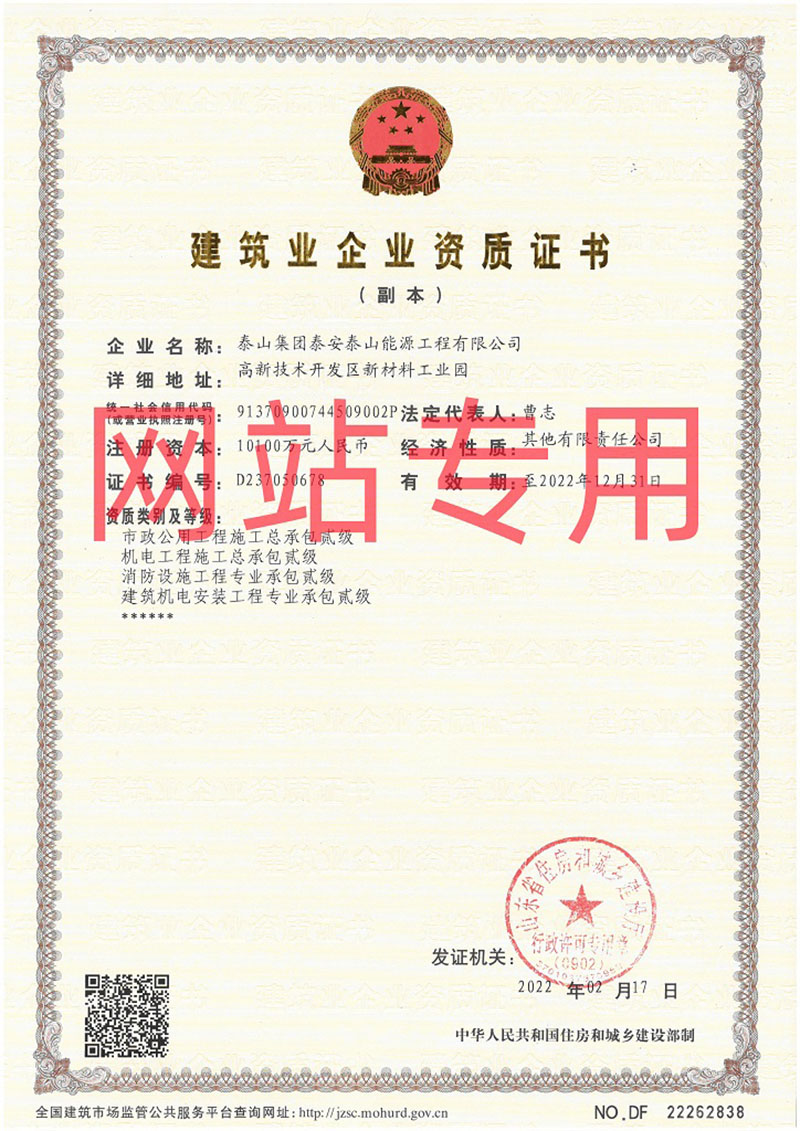 市政公用工程施工總承包貳級、建筑機(jī)電安裝工程專業(yè)承包貳級、機(jī)電工程施工總承包貳級、消防設(shè)施工程專業(yè)承包貳級