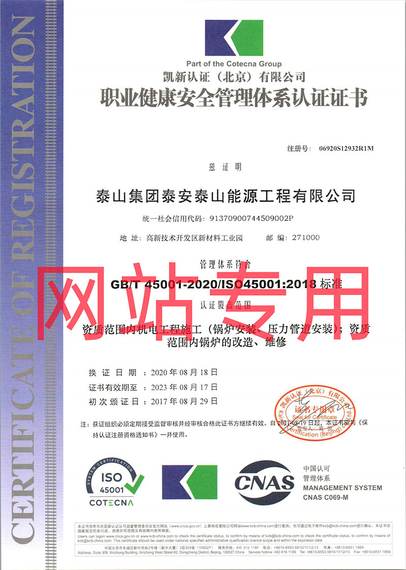 職業(yè)健康安全管理體系認證證書